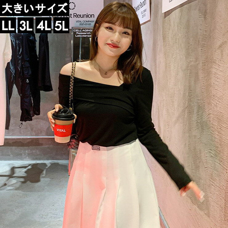 大きいサイズ レディース 長袖トップス 薄手ニット ワンショルダー 黒 LL 3L 4L 5L ブラック 20代 30代 40代 13号 15号 17号 19号 新入荷 ネコポス可【スーパーセール割引】