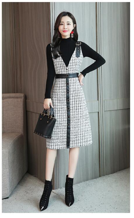 予めご了承くださいませベスト風ウールワンピース 黒薄手ニット付きレディース ワンピース 繋ぎ およばれ 正統派 純情派 膝下丈 細身効果 脚長効果韓国風 通勤 デート \\活躍シーンいっぱい// 3