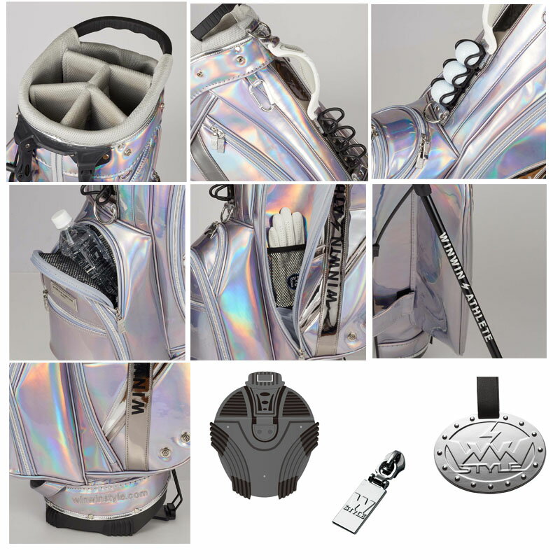 ウィンウィンスタイル アスリートホログラム スタンドバッグ シルバー エレガント 稲妻 ミラー素材 限定品 軽量 9型 CB-508 WINWIN STYLE STAND BAG BL2022at