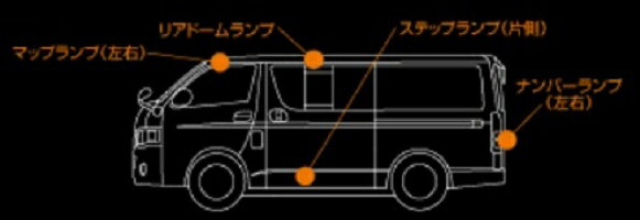 【メーカー名】K-SPEC/ケースペックGARAX/ギャラクス【適合車種】トヨタ ハイエース【年式/型式】200系/【商品名】ハイブリッドLED ルームランプセット 両側【セット内容】マップランプ(左右)、リアドームランプ、ステップランプ(左右)、ナンバーランプ(左右)【塗装/未塗装】-【カラー】-【素材】-【特記事項】強い光が必要なところには高出力LED、柔らかな光が必要なところには高効率LDを配置。