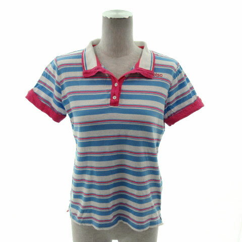 【中古】パラディーゾ PARADISO ポロシャツ 半袖 ハイネック 切替え ボーダー ブルー 青 ホワイト 白 ピンク M レディース 【ベクトル 古着】 211101状態ランク ”AB”詳細については、下記および「状態ランクについて」ページをご覧ください。