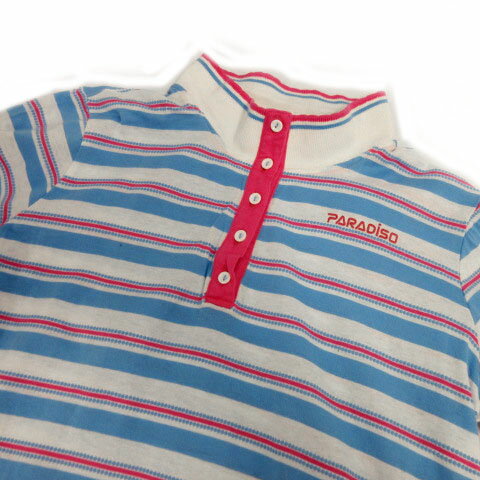 【中古】パラディーゾ PARADISO ポロシャツ 半袖 ハイネック 切替え ボーダー ブルー 青 ホワイト 白 ピンク M レディース 【ベクトル 古着】 211101