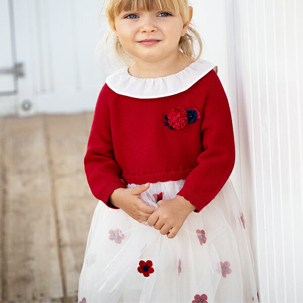 ワンピース キッズ 女の子 長袖 子供服 襟付き チュールスカート 花柄 ポピー 刺繍 フォーマル 入学式 入園式 卒園式 卒業式 発表会 結婚式 誕生日 ピアノ 春 夏 秋 80 90 100 110 120 130 cm db1220201 dave&bella デイブベラ