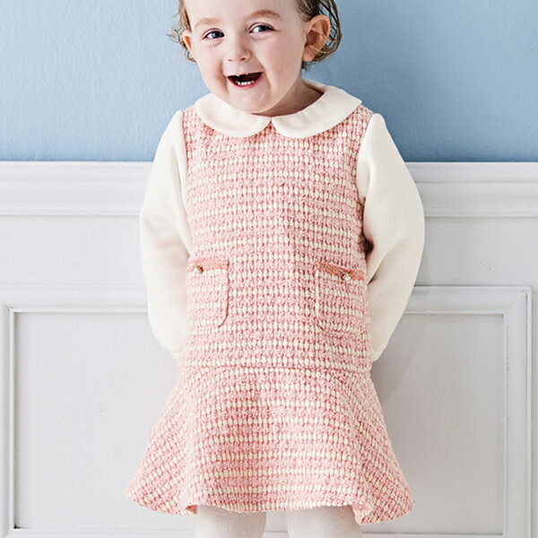 キッズ 子ども服 ワンピース 長袖 女の子 子供服 ツイード 襟付き 上品 通学 保育園 幼稚園 小学校 誕生日 発表会 お食い初め 食事会 ギフト 出産 お祝い お出かけ 春 秋 冬 70 80 90 100 110 120 130 140cm db3222859 dave&bella デイブベラ