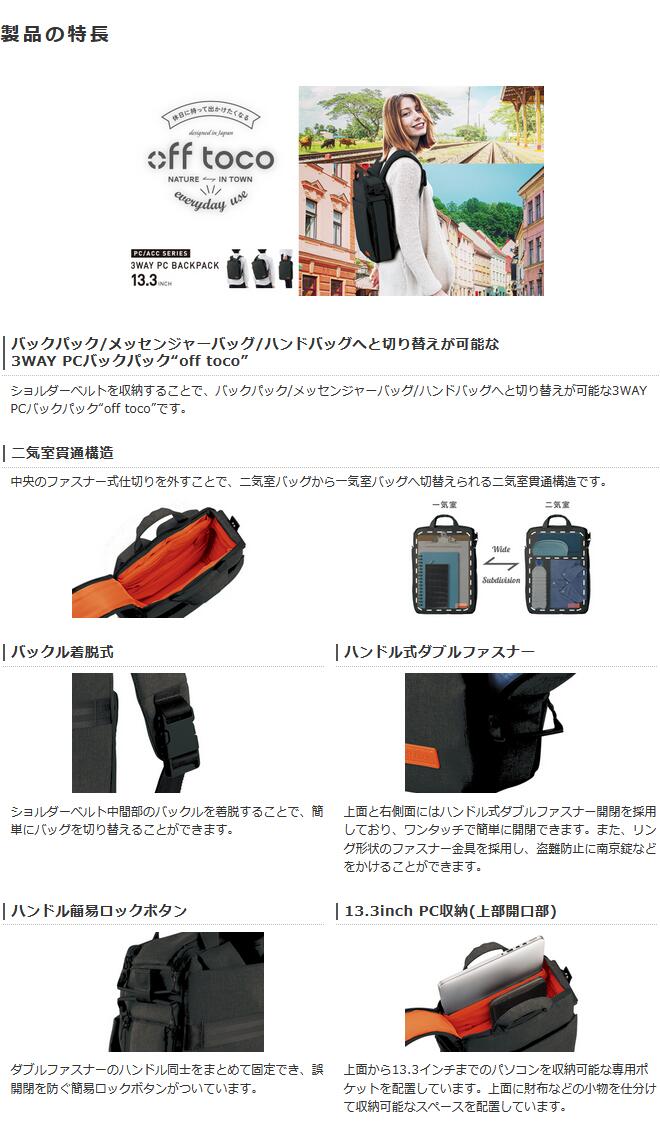 エレコム“off toco”3WAYPCバックパック [BM-OF01BK] 《ご注意点》 ●通常3-5営業日ほどで発送予定です。