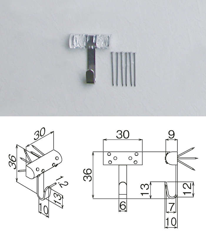 フック M-011 クリアフック ダブル クリア クリア時計・カレンダー・アートパネルや帽子・洋服を、簡単に自由に掛けられる壁用金具です新生活を迎える方必見!時計・鏡・カレンダーを掛けるのに便利な吊り金具で、ピンが細く賃貸でも安心して使えますカナヅチで軽く打ち込む簡単な吊り金具で、女性でも手軽にシッカリ取付けられます細ピンなのに壁面をしっかりホールド!見た目以上の耐荷重で安心してアートパネルが飾れます見た目が小さくてもしっかり固定!重い油絵も安心して飾れる吊り金具です全国の専門店が取り扱っている信頼のトップシェアブランド●Item Spec■主材質:[フック]スチールメッキ、樹脂■付属品:石こうボード用ピンmade in japan■安全荷重:10kg※サイズ・重量などの表記はすべておおよそとなります。
