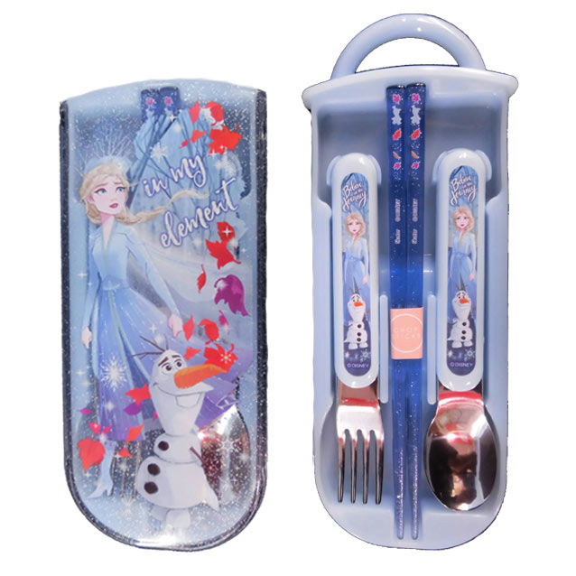 アナと雪の女王2/アナ雪☆トリオセット/箸+フォーク+スプーン/スライド式/ランチグッズ/Disney/エルサ&オラフ◇日本製◇