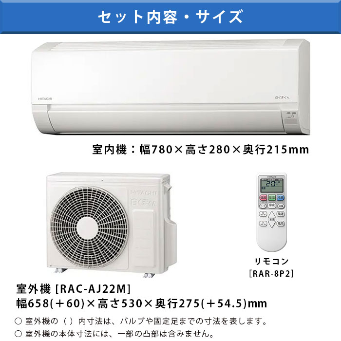 【首都圏・関西・東海・福岡限定】 エアコン 工事費込みセット おもに6畳用 施工保証3年 100V 2022年モデル 日立 RAS-AJ22M-W
