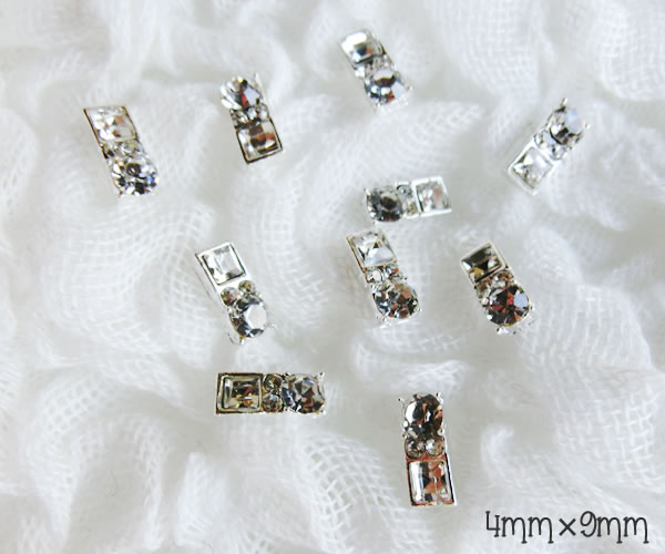 【メール便OK】☆ジュエリーデコパーツ クリスタルバー ビジュー シルバークリスタル スクエア 1個