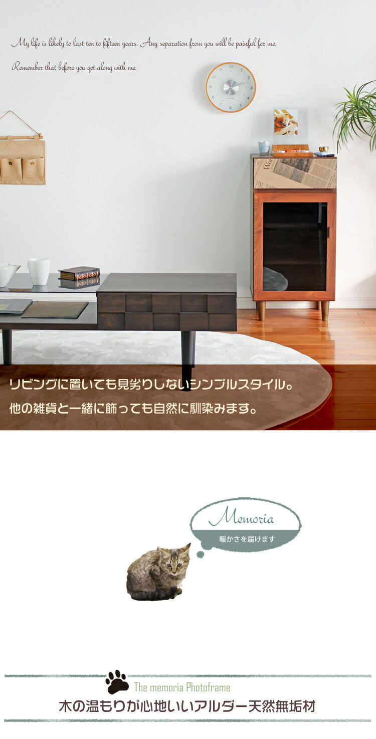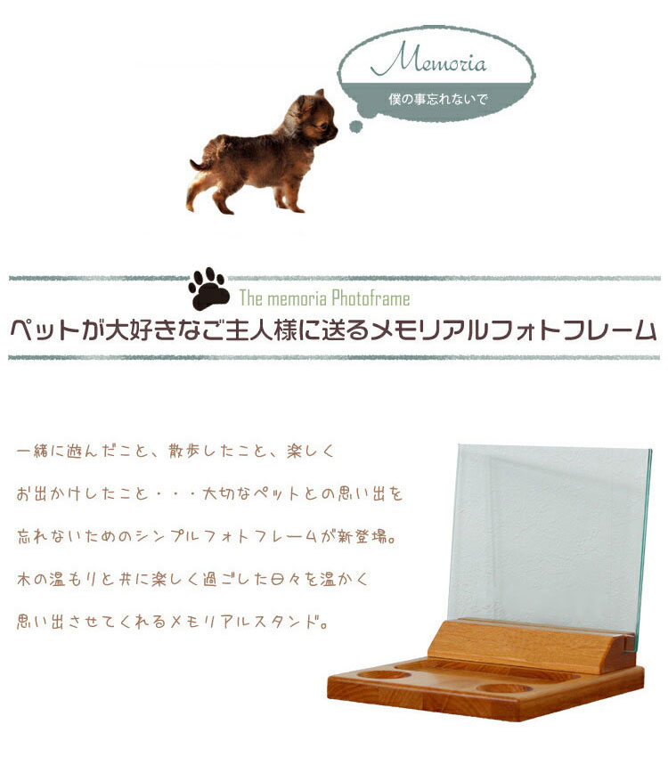 大切な方やペットとの思い出を忘れないため、楽しく過ごした日々を木の温もりと共に思い出させてくれるメモリアルスタンドです。