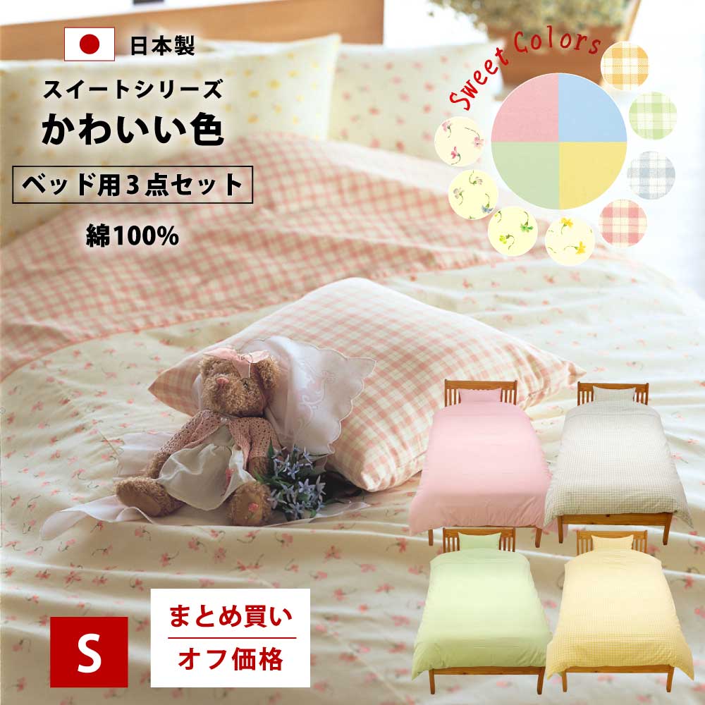 まとめ買いオフ価格 SWEET ベッド用 布団カバー 3点セット シングル 綿100% 日本製 かわいい パステルカラー 全4色 綿100 綿 おしゃれ 布団カバーセット カバー 3 点 セット 掛け布団カバー ボックスシーツ 枕カバー シングルロング サイズ sf3bc150210