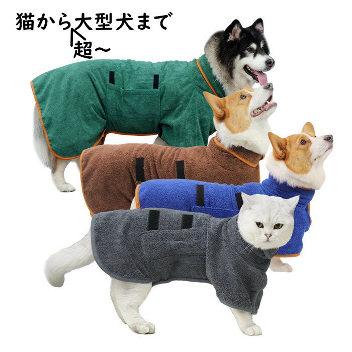 ペット用 バスローブ バスタオル 超吸水 犬用 中型犬 大型犬 超大型犬 犬用バスタオル 体拭き お風呂上がり 犬用ガウン 体を包み込む ふわふわ 太めベルト 調整可 犬 服 防寒 水の弾き飛ばし対策 プール 水遊び 海 M L XL 送料無料