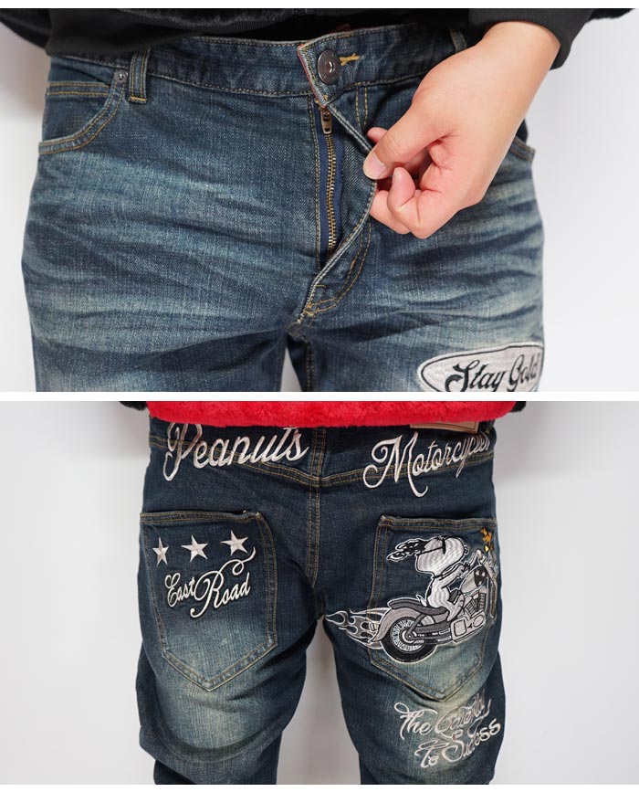 スーパーセール 定価19580円を11%OFFセール[SALE] FLAGSTAFF フラッグスタッフ スヌーピー コラボ ジーンズ デニム ストレッチ バイク 413210 【スヌーピーから新作ジーンズが登場!!】/送料無料