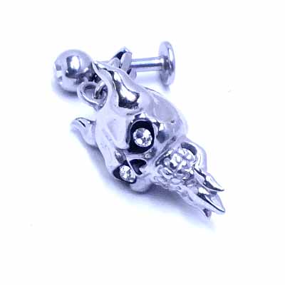 ヒゲの生えたガイコツの目にセットしたクリスタルのジルコニアが不気味に光ステンレスパーツ。